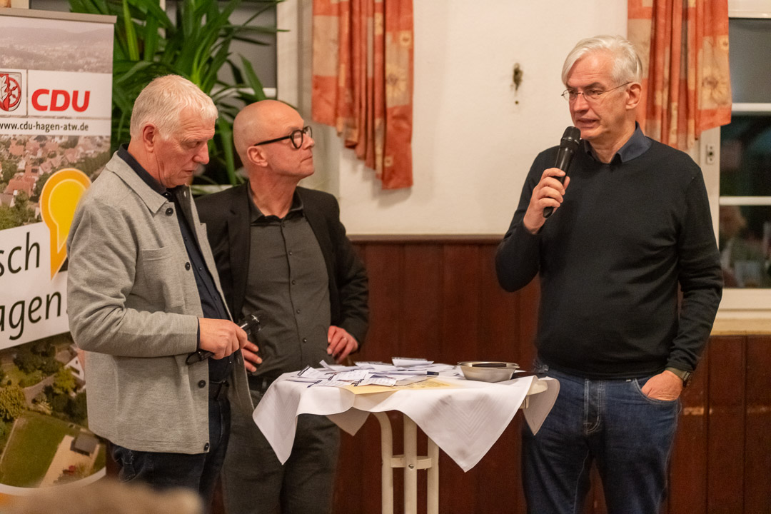 „Als wir dieses Grünkohlessen im vergangenen Herbst terminiert hatten und die Planungen aufnahmen, haben wir noch nicht geahnt, dass wir in der Zwischenzeit den Bruch der Ampelkoalition und Neuwahlen erleben würden“, erläuterte Vorsitzender Rainer Summe in seiner Begrüßung. Man sei froh, dass der Wahlkampf nun vorbei sei und hoffe, dass die Verantwortlichen in Berlin nun zügig an die Arbeit gehen würden. „Wir haben als Hagen geliefert: unser Kandidat Dr. Mathias Middelberg hat in Hagen ein gutes Ergebnis erzielt, bei den Zweitstimmen konnten wir uns sogar noch verbessern. Mit 89,11 % liefert Hagen landkreisweit die höchste Wahlbeteiligung - das ist ein tolles Zeichen für unsere Demokratie“; so Summe. Mit Sorge blicke man auf das lokale Ergebnis der AfD: „Die 11,55 % sind zwar eines der schwächsten Ergebnisse der AfD im Landkreis, gleichwohl bereiten uns mehr als 1.000 Stimmen aus Hagen für diese rechtsextreme Partei natürlich Sorge. Als Hagener CDU werden wir alles dafür tun, diesen Trend zu stoppen“, machte Summe deutlich.
