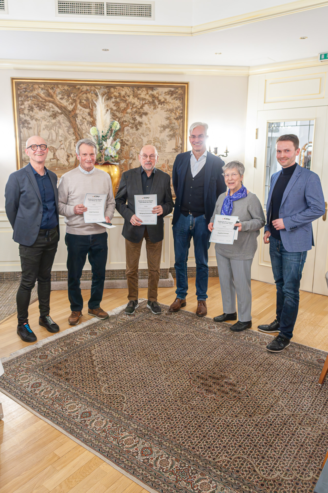 Ein besonderer Moment des Abends war die Ehrung langjähriger Parteimitglieder: Angelika Schmidt, Joseph Haunhorst und Wolfgang Konersmann wurden für ihre 50-jährige Mitgliedschaft in der CDU ausgezeichnet. Der Vorsitzende des CDU-Gemeindeverbandes, Rainer Summe, würdigte in seinen Worten das langjährige Engagement der Jubilare. Die Ehrenurkunden wurden durch den Bundestagsabgeordneten Matthias Middelberg und den Landtagsabgeordneten Jonas Pohlmann überreicht.